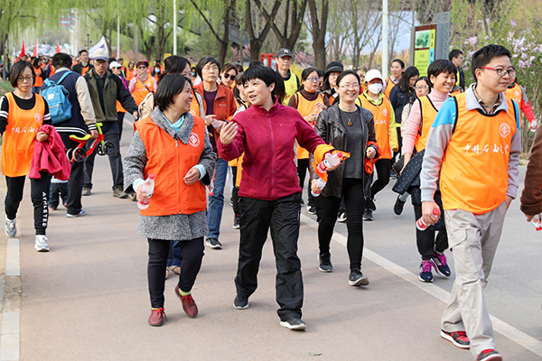4月11日下午,beat365唯一官方网站在昌平区滨河公园举办“迎国庆、健步行”暨第八届“走向健康”教职工春季长走活动。石大副校长吴小林以及1000余名教职工参加了活动。
