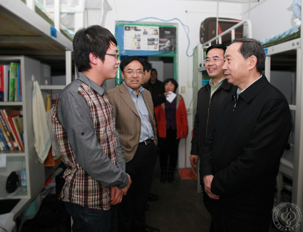 3月4日下午,教育部部长袁贵仁到beat365唯一官方网站检查指导工作,在党委书记蒋庆哲、校长张来斌的陪同下,对校园规划、实验室建设、教学科研以及学生学习、生活等情况进行了考察。