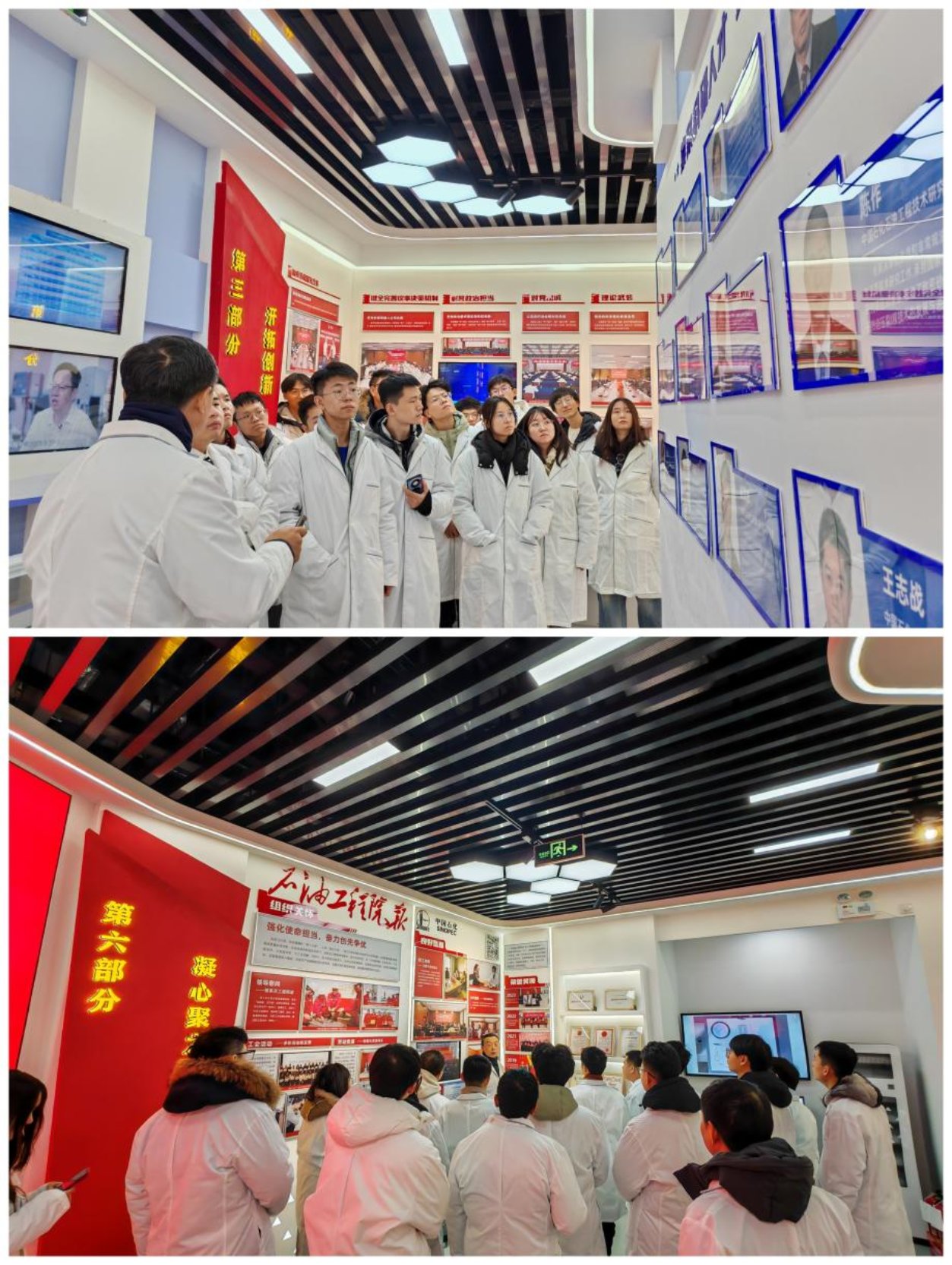 企业文化展厅紧随科技展厅之后,一面面奖状、一段段人物故事,同学们纷纷感动于中石化为保障国家能源安全所做的努力,敬佩于中石化勇担国家战略科技主力军的作为,自豪于自己即将成为新一代石化人的职责和使命。