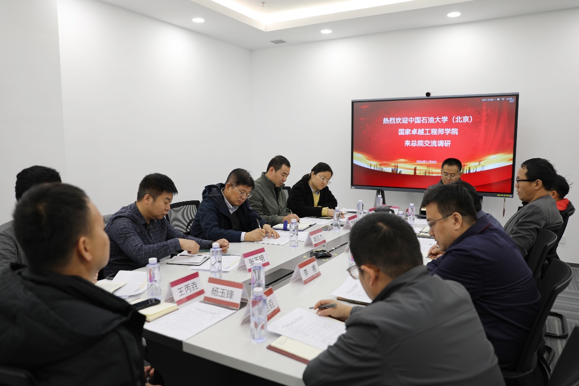 11月8日上午,国卓院执行院长、研究生院副院长詹亚力,机械与储运工程学院副院长张玉明,研究生院学位办公室主任齐昌政及研究生院相关工作人员前往国家管网科学技术研究总院开展调研交流。研究总院人力资源部负责人陈国群、数字化中心主任蔡永军、资产完整性研究中心主任李睿等相关领导以及企业导师代表、2022与2023级专项生参与会议。