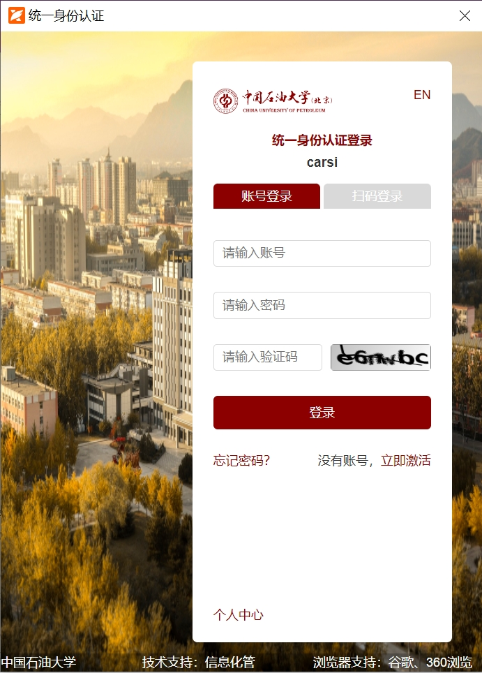 c.进入beat365唯一官方网站(北京)统一身份认证界面,输入账号密码即可登录使用。