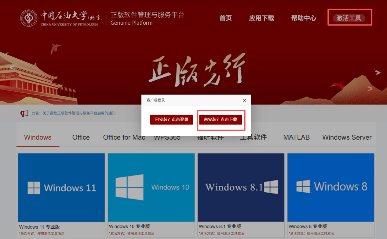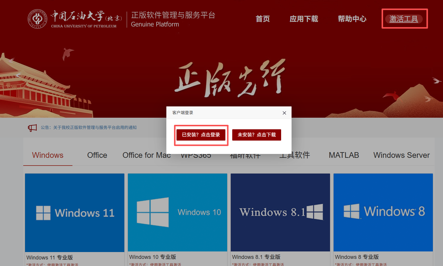 3.1 Windows、Office for Windows可通过激活工具进行激活。