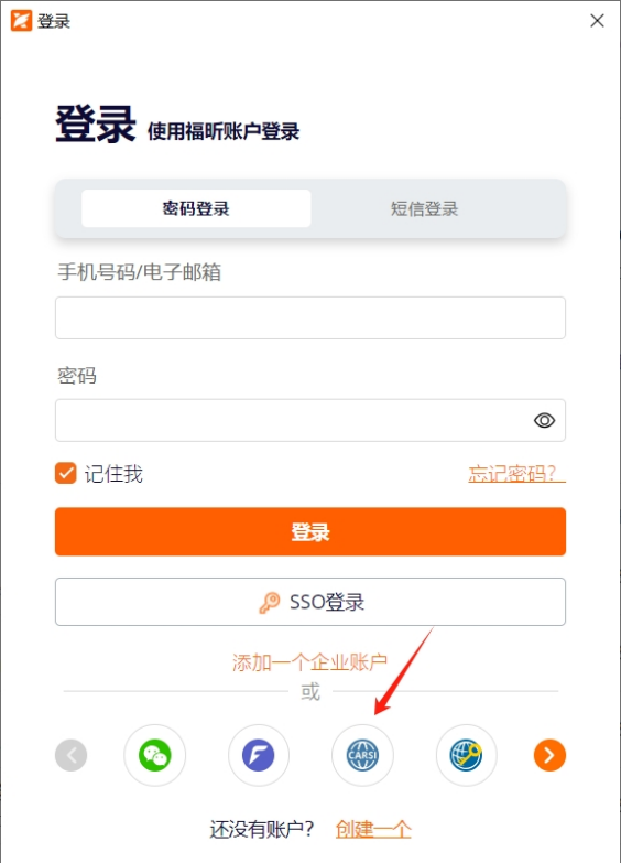 b.选择"SSO专属账号”-输入专属代码“cup”。