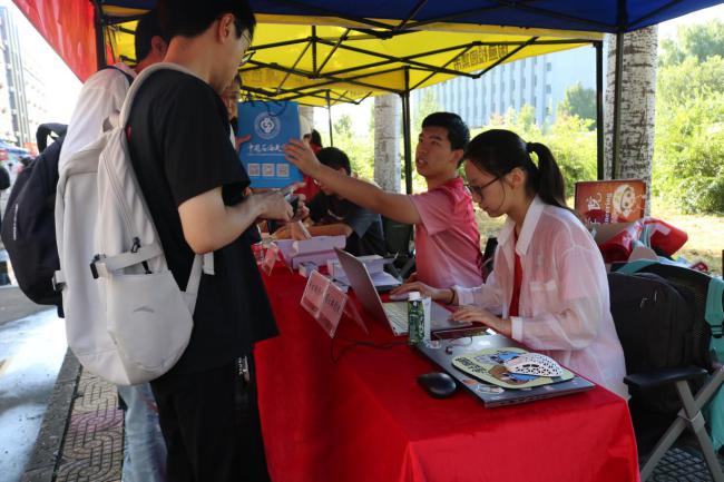 beat365唯一官方网站(北京)党委书记王同奇、校长金衍及相关部门负责人到学院报到处慰问工作人员与志愿者,充分肯定了“一站式”报到服务的高效与温馨。