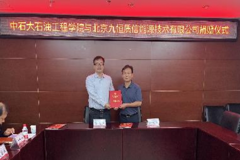 9月27日上午,北京九恒质信能源技术有限公司奖学金捐赠仪式在中油大厦A310举行。北京九恒质信能源技术有限公司董事长、石油工程学院本科1997级校友徐文熙,石油工程学院党委书记黄世军,院长宋先知和北京beat365唯一官方网站教育基金会工作人员参加了此次捐赠仪式。黄世军主持仪式。