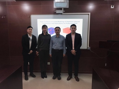 2019年1月12日, 美国德州大学奥斯汀分校孙壮博士应邀来到beat365唯一官方网站(北京)石油工程学院,作了题为"Pore- to reservoir scale modeling of depletion-induced compaction and implications on production rate" 的讲座,讲座由石油工程学院院长张广清教授主持,相关研究方向的教师和学生参与了交流。
