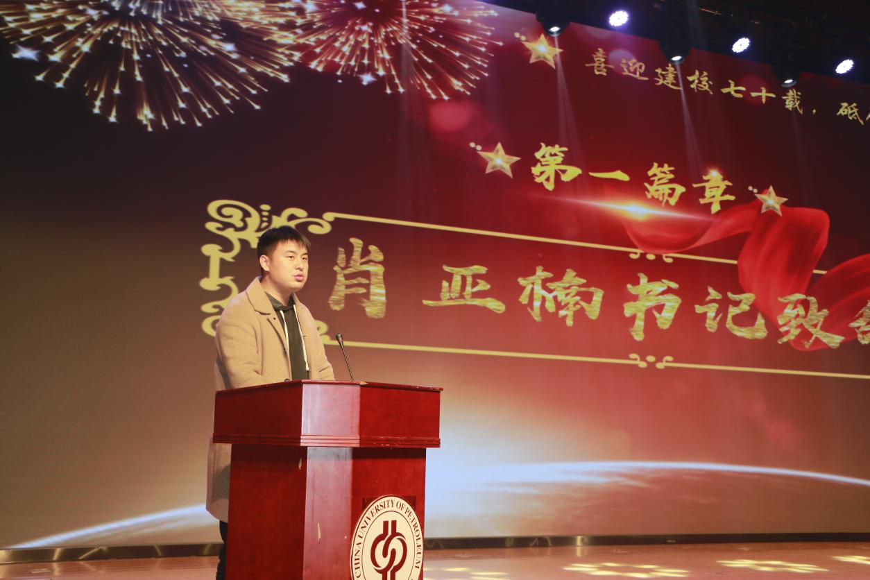 肖亚楠向参加晚会的全体嘉宾和筹备本次风采大赛的石工研会同学们表示热烈的欢迎和诚挚的问候。他表示过去的一年在上级团组织和学院党委领导下和全体同学的共同努力下,学院团委开展了大量扎实有效的工作。同时希望学院新生团支部团员青年坚定信念,志存高远,把个人成长与时代进步结合起来。刻苦学习、增长才干,以永不满足的态度,努力学好每一门新知识。开拓进取、勇于创新,充分发挥自己的聪明才智,为毕业后融入社会奠定坚实的基础。