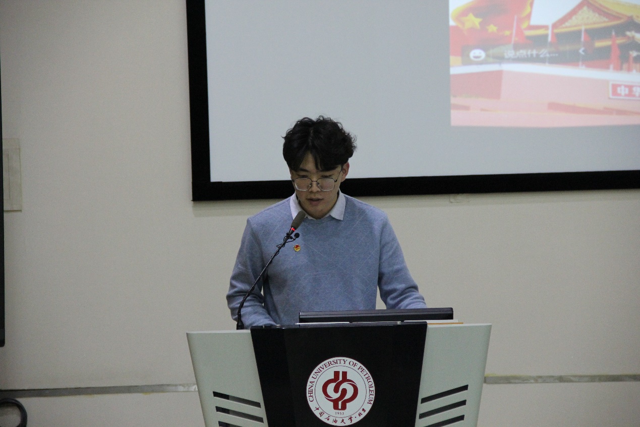 杨国峰给大家带来了一场主题为“新时代青年的责任担当”的宣讲。他从世界局势、中国崛起之路和新时代中国青年的担当三个方面讲述了马克思主义在中国的传播对中国的发展、社会的发展的重要意义。他指出,以爱国主义精神为核心的大庆精神、石油精神是老一辈石油人留给新时代石油人的宝贵财富,是激励石油学子奋进的不竭动力。他鼓励青年学生们,努力提高综合素质,怀揣“能源报国”之心,走好新时代长征路,做可堪大用、能担大任的时代新人。