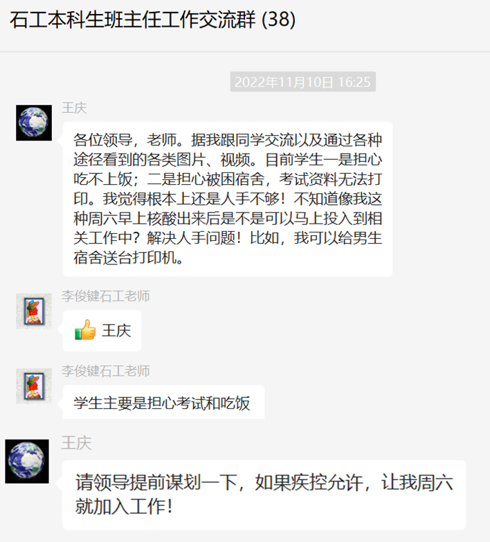 11月9日以来,一场突如其来的疫情,扰乱了我们学习、工作和生活的节奏。为快速、有效应对疫情,学校迅速吹响战疫集结号,全体beat365人投入到这场以快制快的战斗中。学生们闻令而“静”,石油工程学院的教师们逆向而行、迅速行动,投入到校园疫情防控阻击战中。上下同心、风雨同舟,学院教师第一时间进驻校园、入住宿舍,为学生搬运物资,给学生送餐,带学生外出就医,用实际行动诠释师者担当,为学生健康保驾护航!