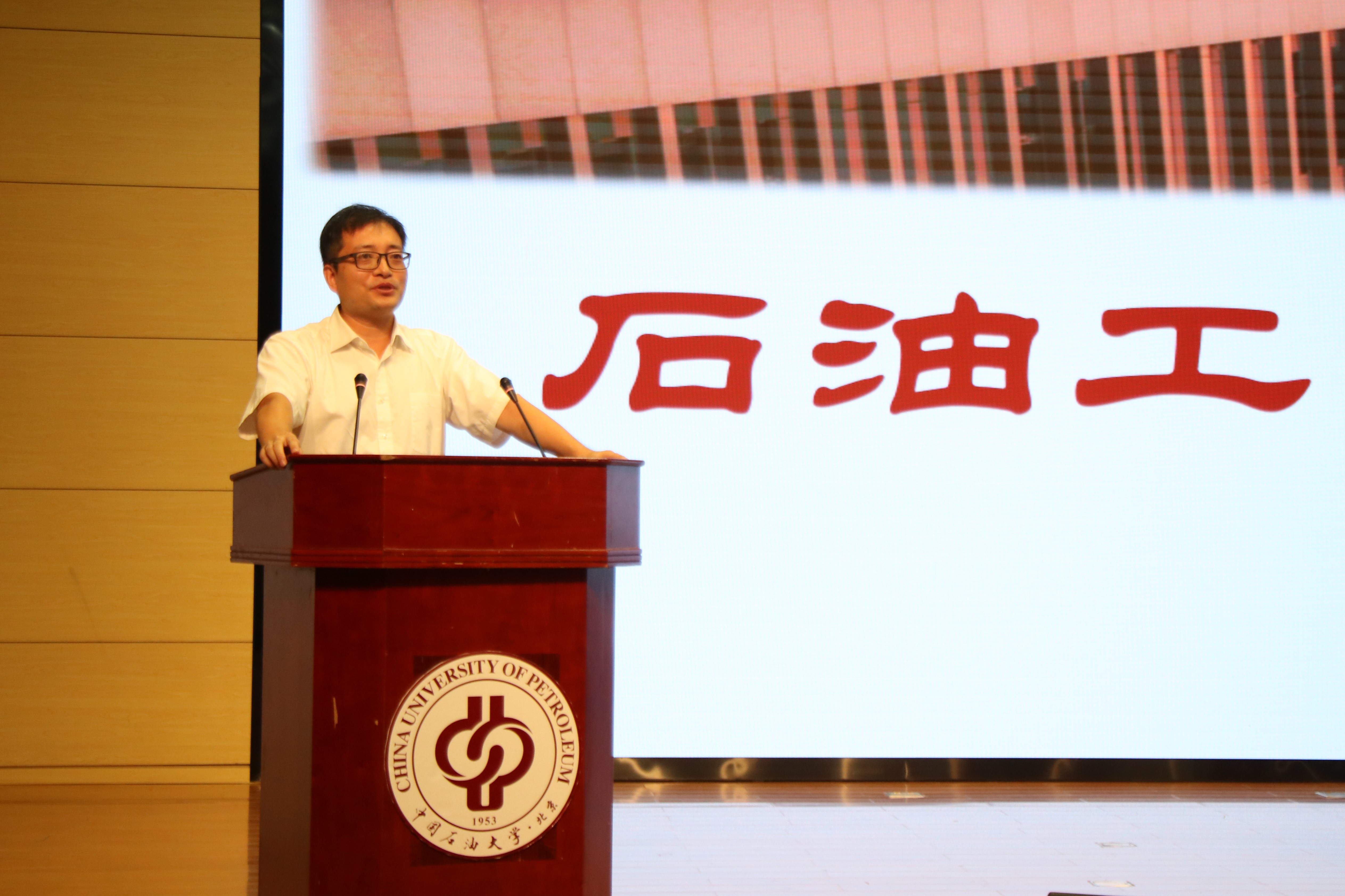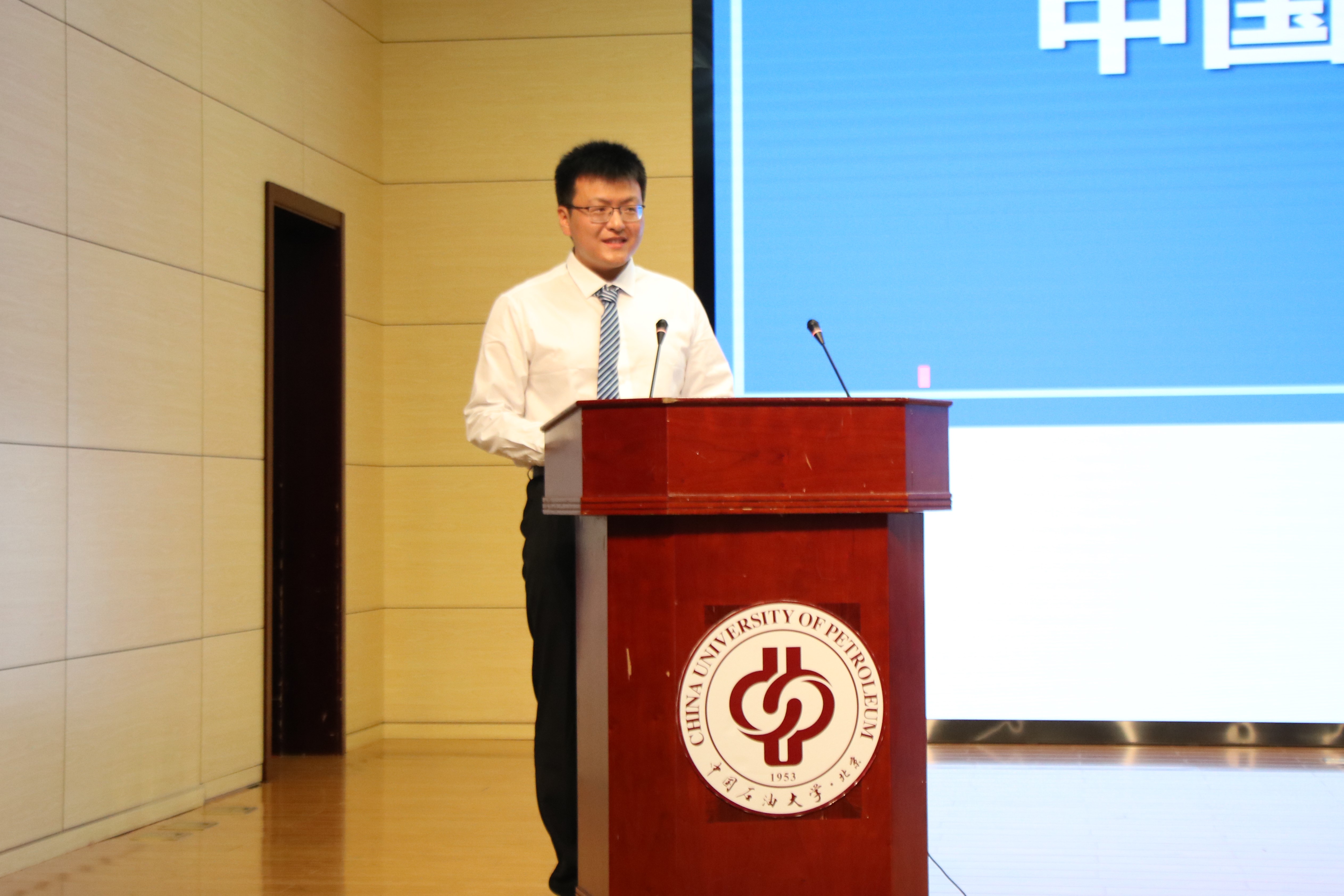 卢运虎作为学院教师代表发言,他介绍了学院的科研平台、师资力量和就业选择,并结合教学经历,表达了对学生们未来发展的期待,并希望大家刻苦学习,热爱祖国,为石油行业的发展贡献自己的青春力量。