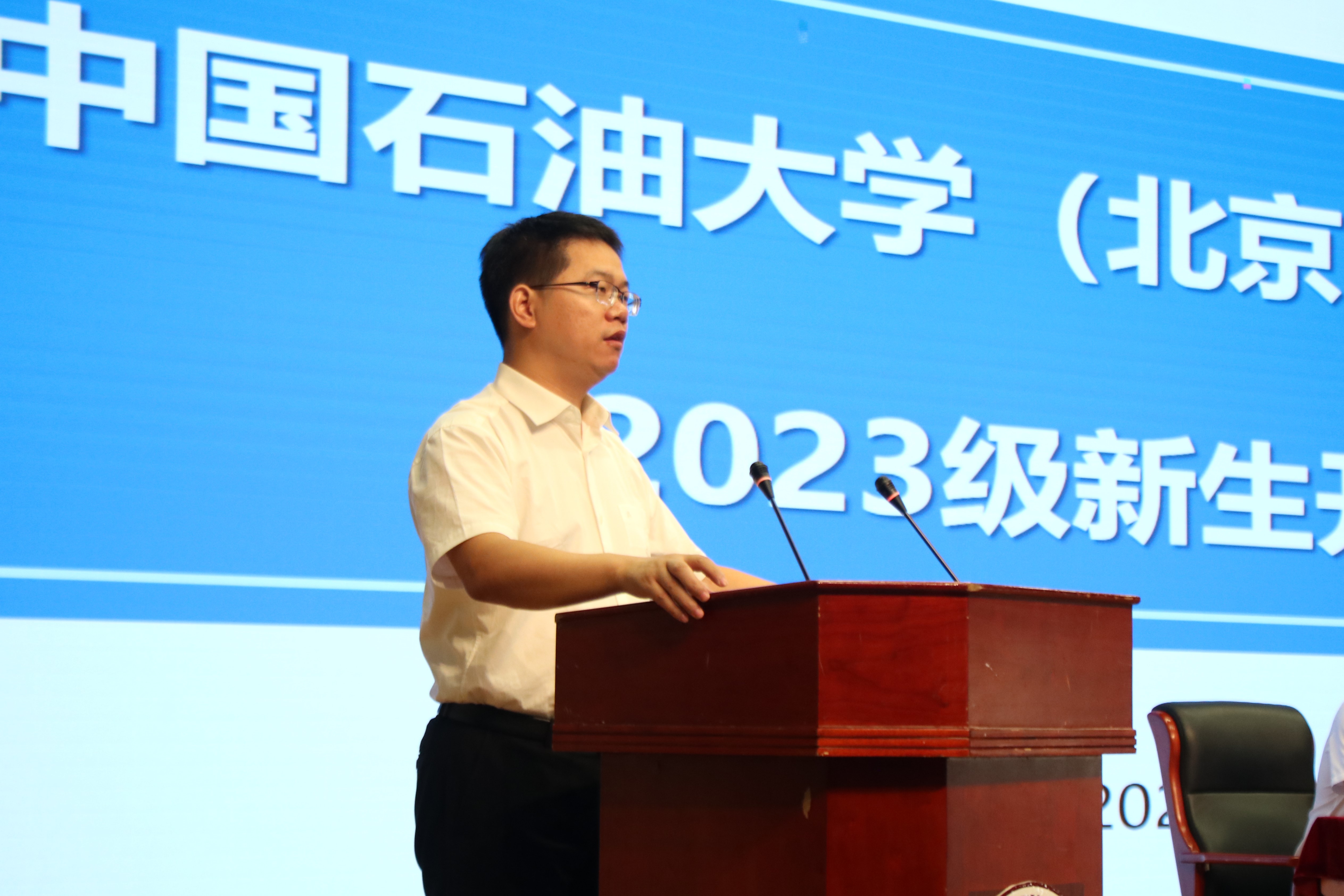8月23日上午,石油工程学院在中油大厦三层报告厅举办2023级新生开学典礼。学院党委书记黄世军,院长宋先知,副院长刘伟、王敬、王宴滨,党委副书记刘东东,系主任黄中伟、马新仿、李世远,实验中心主任周劲辉,团委书记肖亚楠,教师代表卢运虎,新生辅导员、班主任出席典礼。开学典礼由黄世军主持。