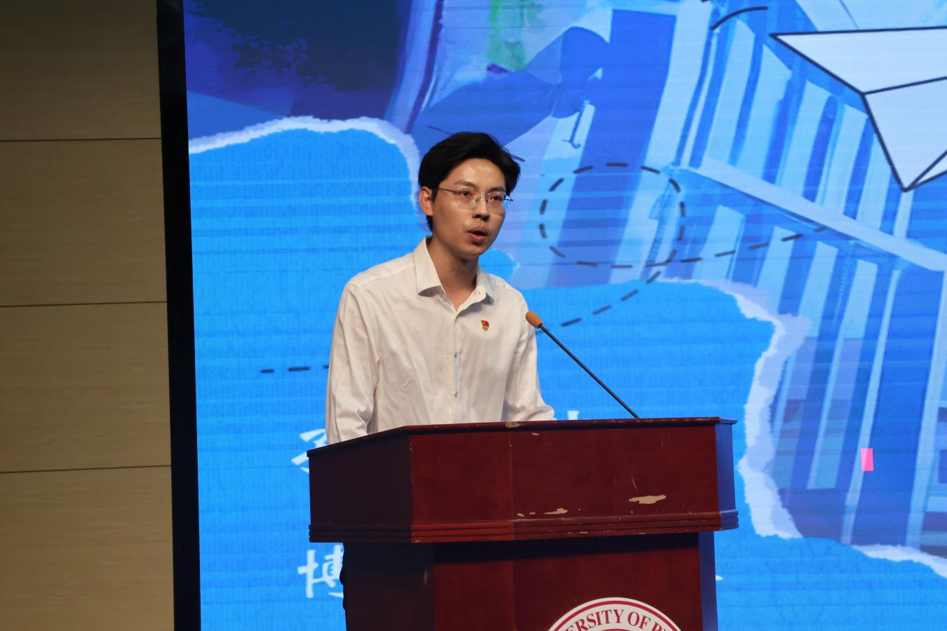 2023级博士研究生孙照伟作为在校博士生代表发言。他用“求学”“探索”“成长”三个关键词,分享了自身“本-硕-博”3个阶段的求学历程,以“抱定宗旨”“砥砺德行”“敬爱师友”与新同学共勉,祝愿大家保持坚韧,勤勉向上。