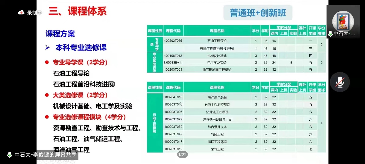 8月25上午10点,石油工程学院面向2022级本科生线上举行本科专业介绍大会,由石油工程学院李俊键教授主讲,2022级本科生辅导员李季龙主持会议,全体本科新生参加。