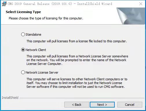 一、在安装CMG软件过程中,当进行到如下图所示的进度时,请选择第二个选项【Network Client】,然后点击Next;