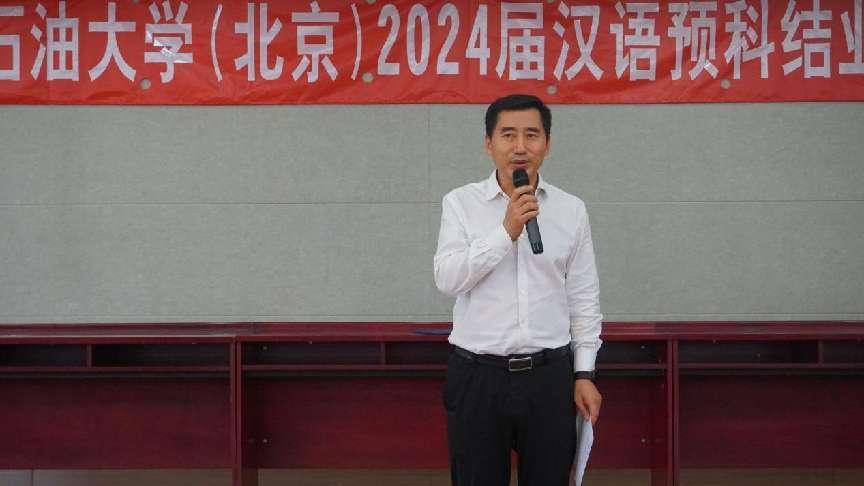 院长岳大力教授在典礼上发表了热情洋溢的讲话。岳院长首先对所有完成预科课程、即将开启大学新篇章的学生们表示了热烈的祝贺,并对他们在汉语学习上的不懈努力和取得的成绩给予了高度评价。同时,他也向辛勤工作的老师们表达了最深切的敬意。