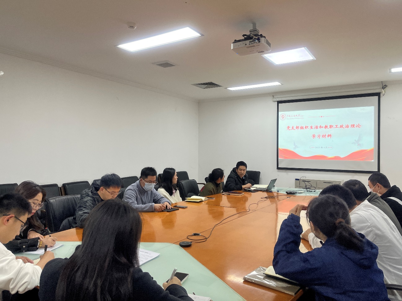 2023年4月6日下午,油气资源与探测国家重点实验室党支部在地质楼206开展组织生活会暨教职工理论学习,会议由党支部书记范卓颖支持。