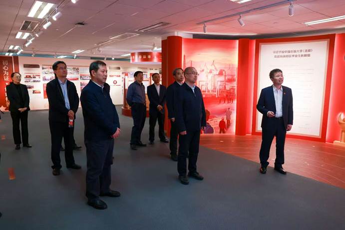 于英杰听取了学校建设发展情况汇报并实地调研了油气资源与工程全国重点实验室,参观了学习贯彻习近平总书记重要回信精神展厅和石油精神教育基地(思政课虚拟仿真实验室)。