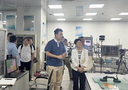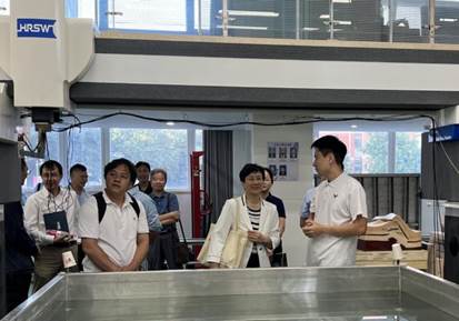 随后,底院士参观了阶梯教室的地震物理模型实验室、生排烃模拟实验室、井孔地球物理实验室、岩石力学实验室、沉积-地层物理模拟(水槽)实验室。在地震物理模拟实验室中,底院士观摩了仪器的操作流程和实验现象,对模拟出的地质模型的准确度给与了高度评价。
