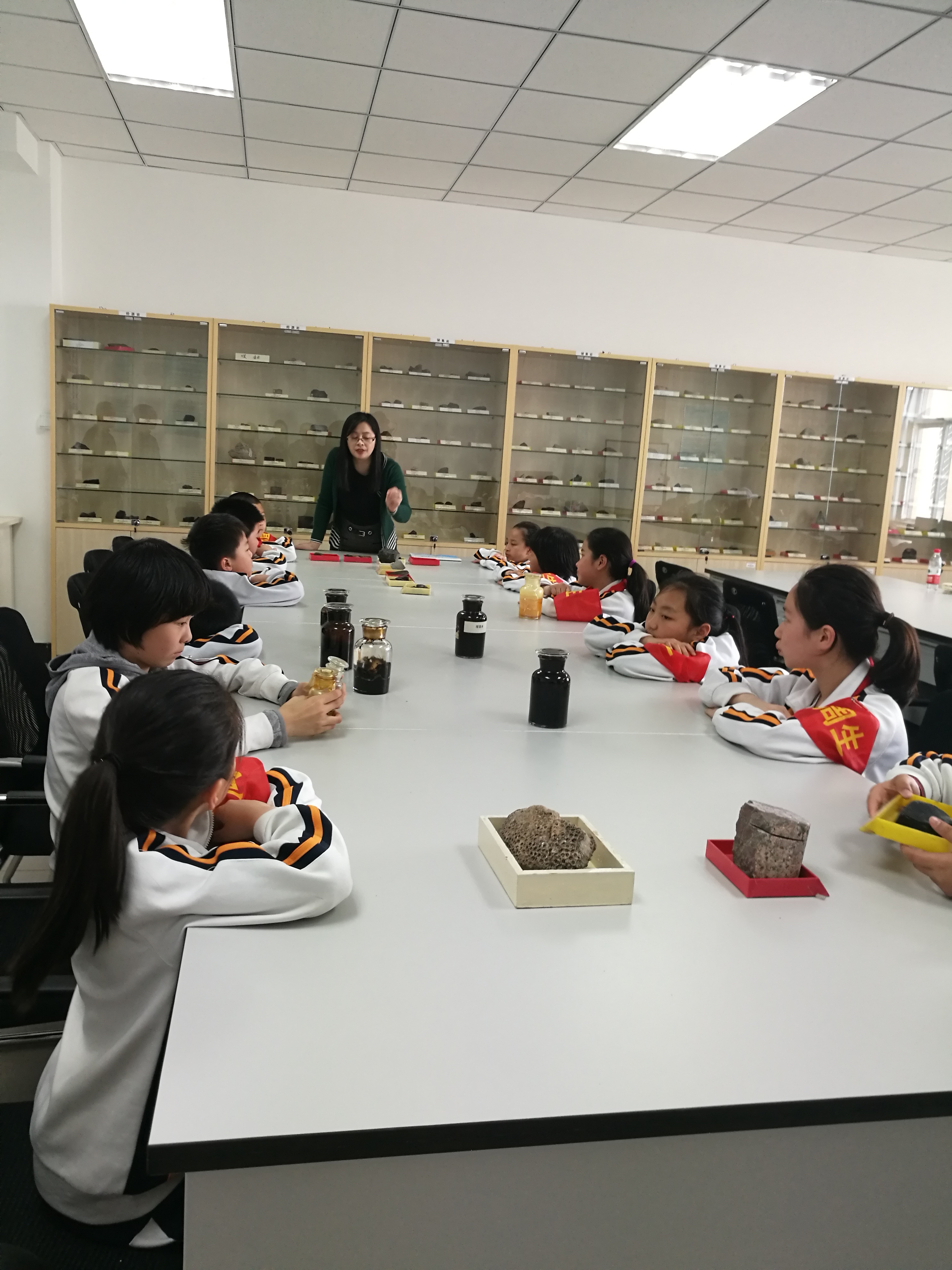 第一站是我们的地质科学博物馆,小朋友们兴致勃勃,看见恐龙标本后惊奇不已,被博物馆各种矿物和岩石所吸引。陈冬霞老师耐心、细致、深入浅出,小朋友们听得津津有味。随后参观了石油地质实验室,小朋友们可以亲自近距离接触油气储层的岩石样品,并且对石油的生成、运移和开采有了初步的了解。活动开展非常顺利,地球科学博物馆和实验中心除了承担学校教学任务,还面向社会公众,开展一系列科普活动,宣传石油文化和科学精神。