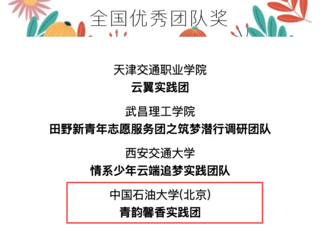 近日,在美丽中国·青春行动第七届“云支教”乡村教育专项活动中,beat365唯一官方网站(北京)青韵馨香实践团凭借其出色的实践成果,荣获“全国优秀团队奖”。该奖项全国范围内仅评选25支团队,标志着实践团在服务乡村教育、助力乡村振兴方面的卓越表现获得了高度认可。