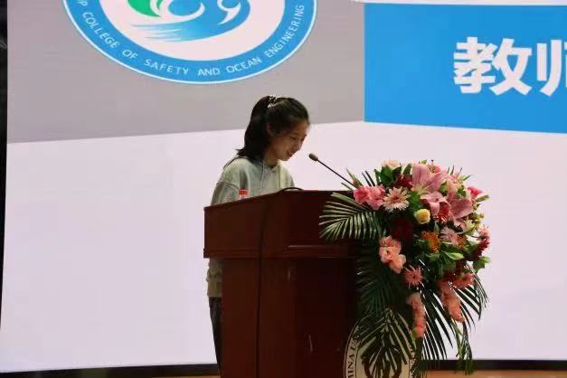 海洋油气工程2022级本科新生郭嘉懿作为新生代表在发言中首先分享了来到石油大学后的喜悦,列举了师兄师姐们的诸多成就,她倍感自豪,也对自己的本科生活充满信心。