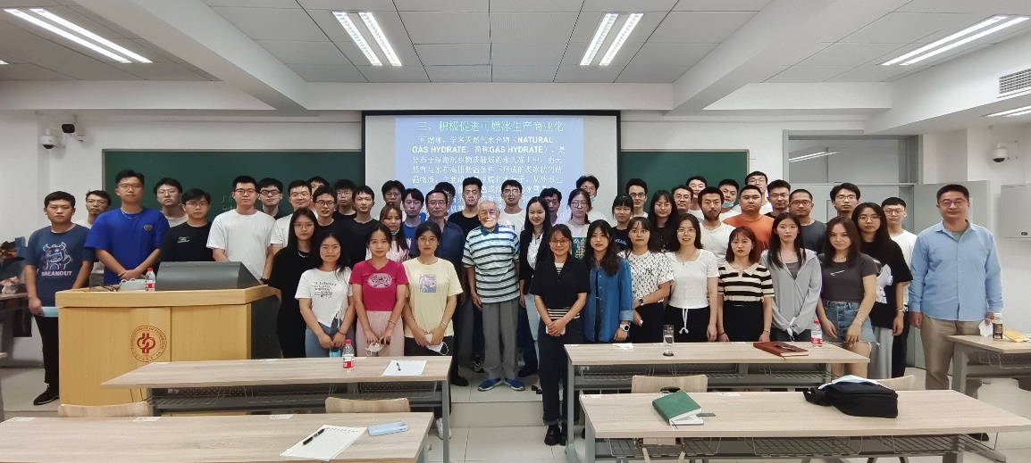 方华灿以“我国海洋油气能源转型的展望”为题,秉承理工结合、交叉创新、领跑前沿、科技报国的研究理念,深入分析了大力发展天然气液化天然气、发挥海上优势发展风力发电、积极促进可燃冰生产商业化以及全面推进节能绿色低碳生产等方面的问题,讲座中运用现场实际生产资料和工程图片,充分阐述了“十四五”海洋能源发展遵循的理念、产业布局与“双碳”目标。方华灿鼓励青年学子要树立远大理想,把个人的志向和祖国、民族、人民的命运相结合,他相信中石大学子一定会为海洋能源的转型、绿色低碳发展,“十四五”目标的实现立新功、创辉煌!