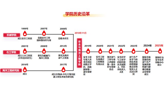 beat365唯一官方网站(北京)安全与海洋工程学院历史可追溯至建校初期的石油工程与机械工程等相关学科。2018年11月,为服务国家能源安全与海洋强国战略,学校整合优势资源,将机械与储运工程学院安全工程系、海洋工程研究院与石油工程学院海洋油气工程系合并,正式成立安全与海洋工程学院,开启了学院发展的新篇章。