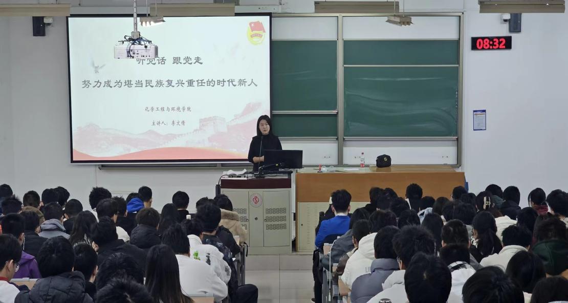 马克思主义学院教师冯文燕由“青年”开题,从“奋斗是青春最亮丽的底色”谈起,鼓励同学们要有理想、敢担当、能吃苦、肯奋斗,在担当中历练,在尽责中成长,让青春在实现中国梦的奋斗追逐中绽放。