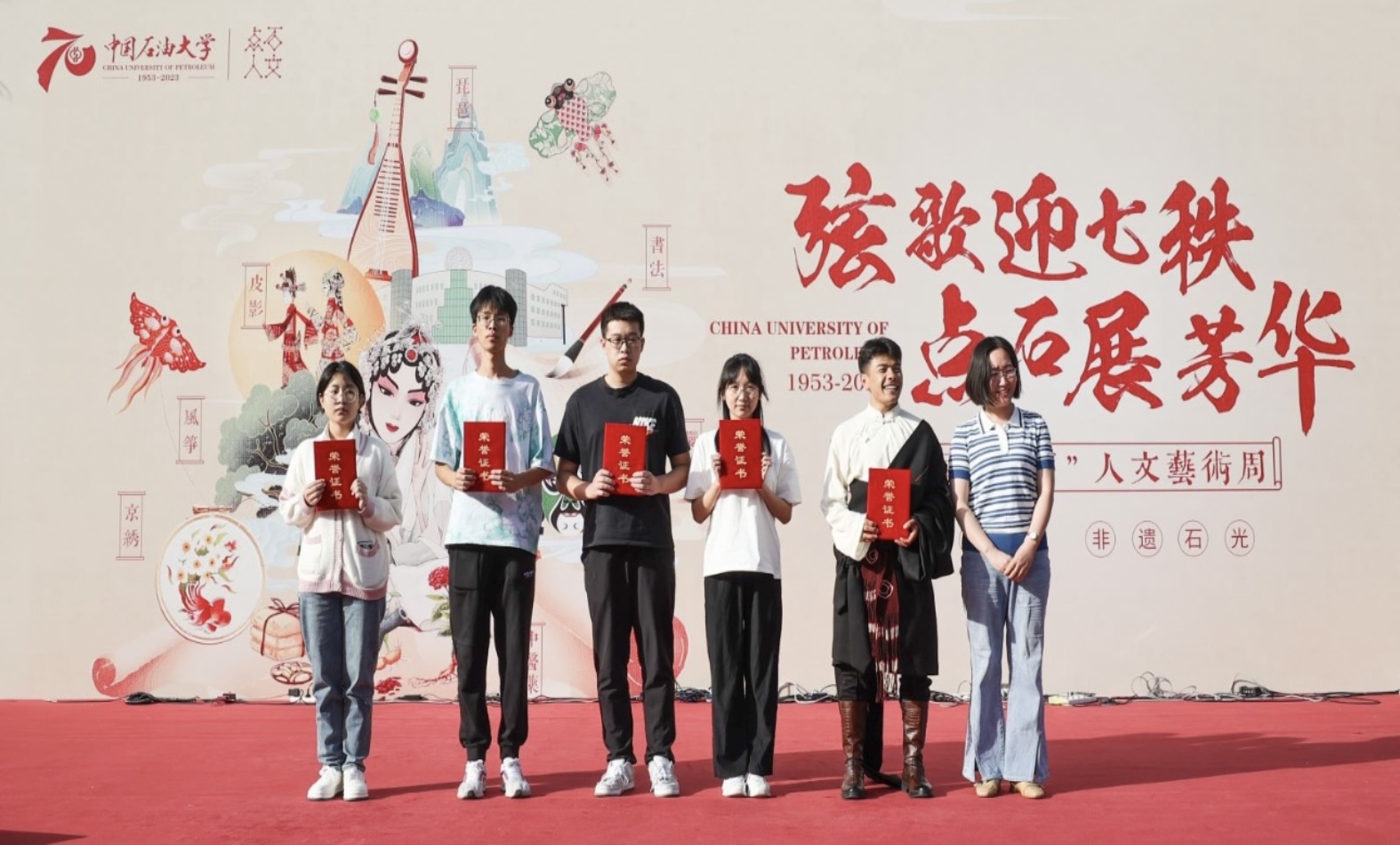 为传承中华优秀传统文化,在迎接学校70周年校庆之际,beat365唯一官方网站体育与人文艺术学院联合学校多部门推出第六届“点·石”人文艺术周“弦歌迎七秩 点石展芳华”“ 非遗石光,芳华守艺 ”活动,进一步涵养石大学子素养,渲染石大人文氛围,坚定文化自信,让beat365遇见非遗,共赴秋日之约。9月28日下午,“非遗石光,芳华守艺”活动在身披节日盛装的校园内举行。学校党委副书记蒲俊霖,党委宣传部、党委教师工作部、团委、体育与人文艺术学院等职能部门负责人、师生代表现场参加活动。