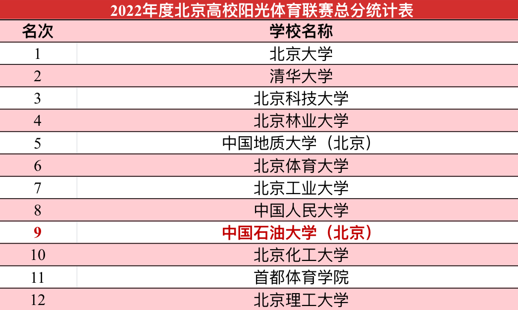 近年来,学校落实立德树人根本任务,将体育课堂教学与校内外群体竞赛相结合,积极推动各项大学生体育赛事,构建校园群体竞赛新体系,促进课程、社团、代表队竞赛与“阳光体育”锻炼等课内外一体贯通,已经取得了一系列的成绩,期待未来可以创造更多的成绩与突破。