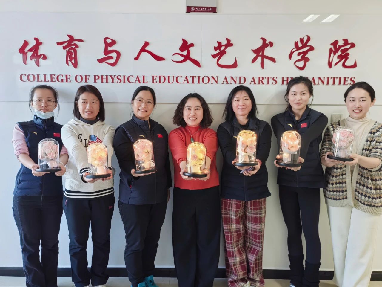为了感谢和表彰女性教职工一年来对学校的无私付出,文体学院工会为可敬可爱的老师们准备了精致的花束。愿这些花儿能给老师们带来无限的喜悦和幸福,也希望学院老师们继续在教育事业上挥洒汗水,挥笔最美人生。