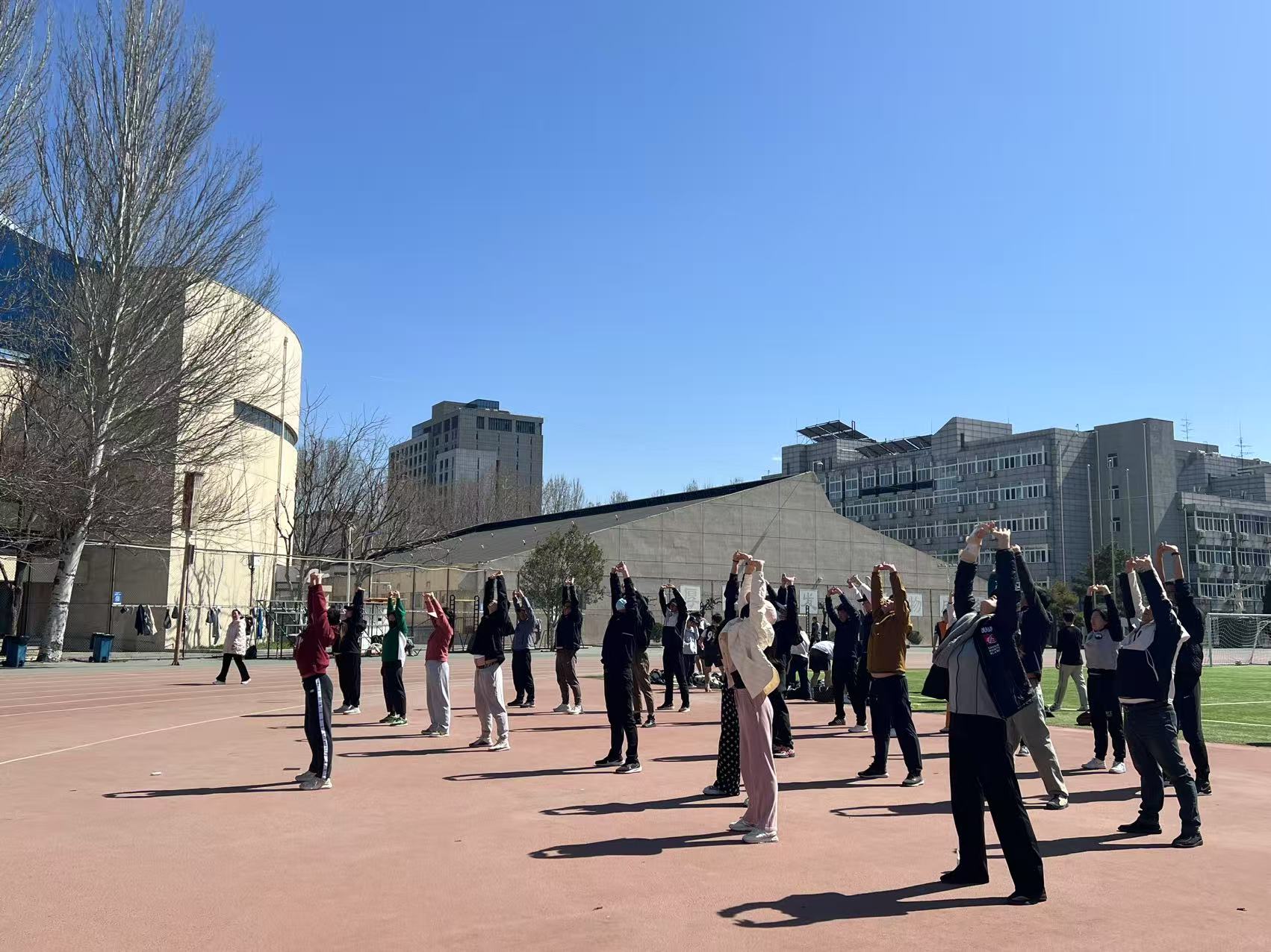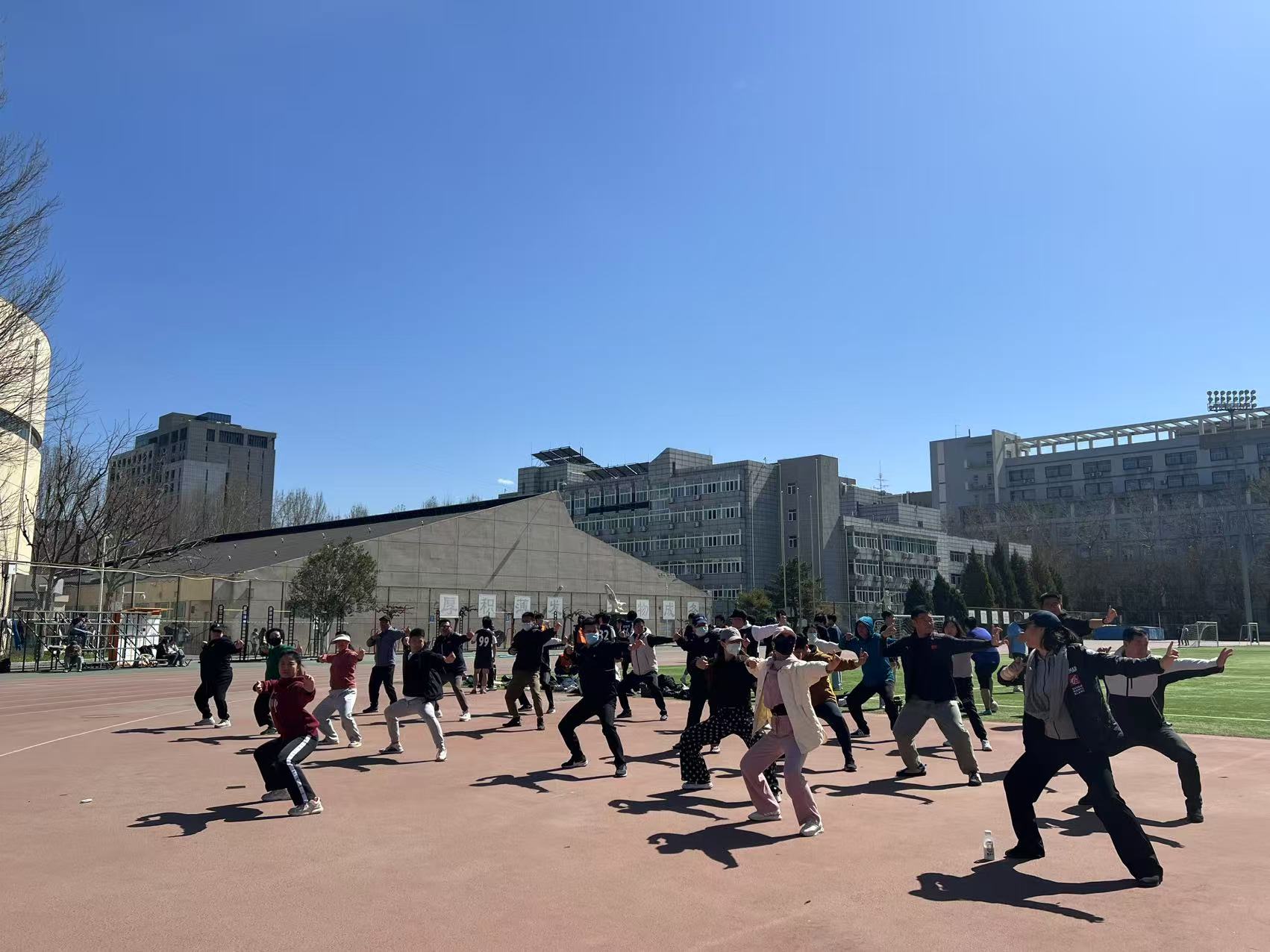 为落实《教职工健康促进工作方案》要求,提高教职工身体素质和健康水平,营造健康向上的良好工作氛围。3月20日中午,文体学院组织了学院教师在红旗操场上共同练习八段锦,开展学院工间操活动。
