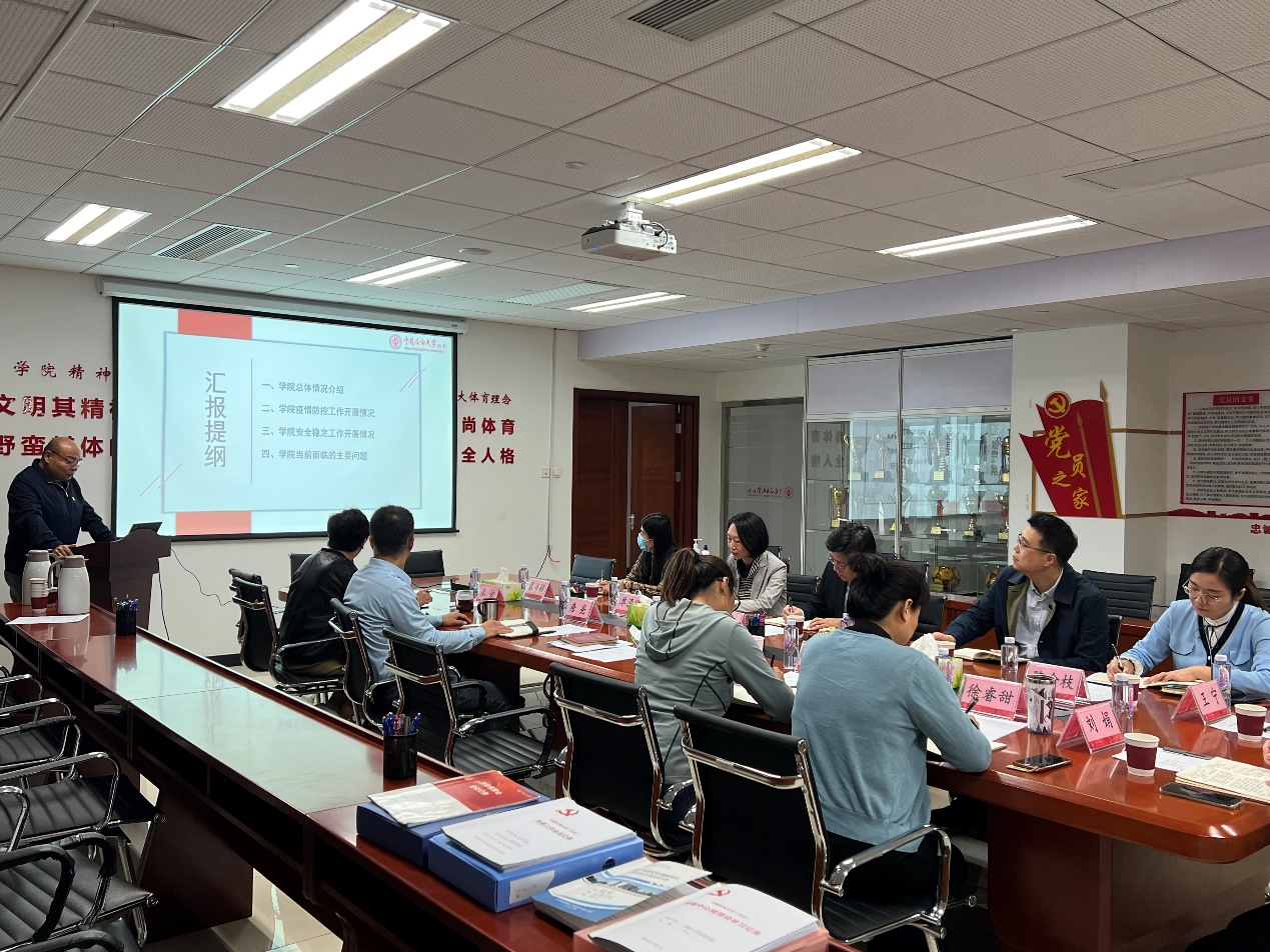 10月7日下午,校党委副书记、纪委书记韩克飞带队到体育与人文艺术学院检查督导疫情防控、校园安全、党风廉政建设和巡察整改等工作。校纪委办公室、校党委巡察工作办公室相关工作人员陪同检查。文体学院党政领导班子成员、党政办公室主任等参加会议。会议由学院党委书记张珣主持。