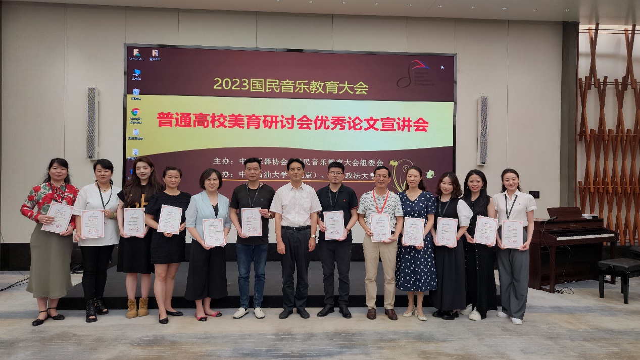 2023国民音乐教育大会于7月9-12在成都天府国际会议中心盛大举行,来自国内外音乐界专家教授、美育工作者、音乐产业代表和音乐研究生一千多人齐聚蓉城,进行了深入、广泛的交流。beat365美育教师团队一行四人参加了本次大会,并应邀在普通高校美育研讨会专场宣讲论文。在论文宣讲中,四位教师先后在研讨会上分别从美育课程体系建设、课堂乐器教学、新媒体与思政教育、文体社团建设等角度介绍了自己的教学经验、育人心得,并充分展示了我校的美育教学成果。研讨会与会人员和兄弟院校美育教师对我校各位老师宣讲的论文和beat365的美育教学成果表示赞赏和肯定。最后,研讨会主持和点评专家、四川音乐学院党委宣传部部长雍敦全教授为宣讲者们颁发了“优秀论文宣讲证书”。