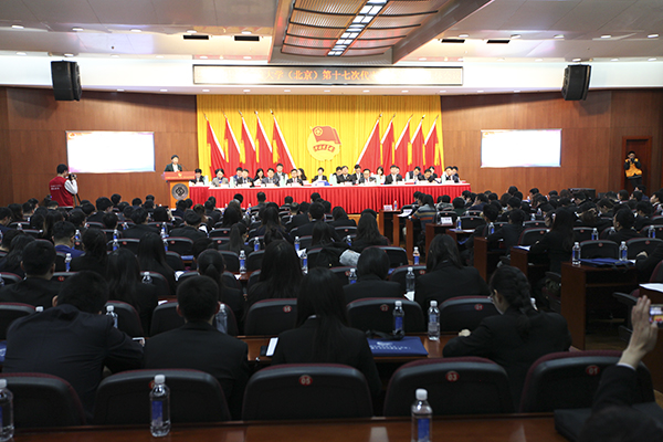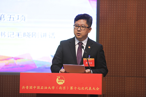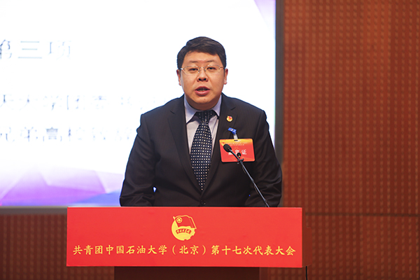 石大团委书记周玉成代表第十六届委员会向大会作了题为“不忘初心,紧跟党走,为建设石油石化学科领域世界一流研究型大学贡献青春力量”的工作报告。报告回顾了过去六年的团学工作,指出六年来学校共青团组织在思想引领、组织建设、创新实践、校园文化建设工作方面取得了瞩目的成果,围绕“凝聚青年、服务大局、当好桥梁、从严治团”四维工作格局,团结带领全校广大青年不忘初心、紧跟党走。报告对共青团今后五年的工作进行了部署和展望。报告指出,未来五年石大共青团工作将以《中共beat365唯一官方网站(北京)委员会关于进一步加强和改进共青团工作的若干意见》为统揽,围绕一个根本任务,聚焦两大阵地,完善三个平台,筑牢四大基石,团结带领全校广大青年不忘初心,牢记使命,向着把学校建设成为石油石化学科领域世界一流研究型大学的宏伟目标不懈奋进。