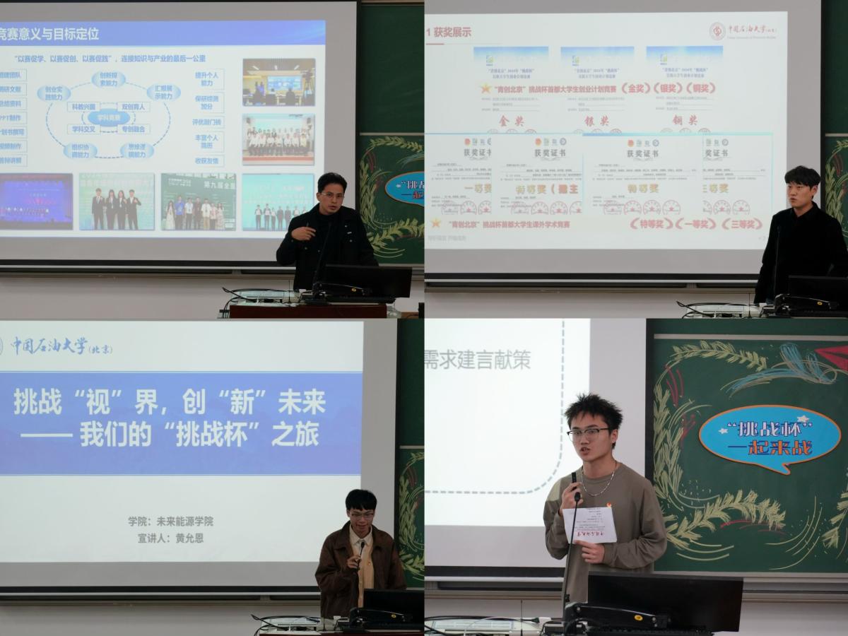 刘东东鼓励同学们走进社会、深入基层,在调研与实践中了解国情民情、激发创新思维、提升创业能力与社会化水平。校团委相关工作人员对竞赛的作品类别、评审要点、赛程安排等内容进行解读。主体赛国家级银奖指导教师许崇、专项赛北京市金奖指导教师胡浩然,往届获奖学生代表黄允恩、潘晓航,分别围绕项目选题、团队协作、材料撰写、答辩准备等方面为参赛师生提供实战指导与方法启示。