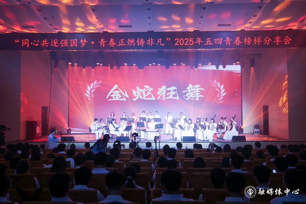 此次青春榜样分享会分为敬不凡、追非凡、创超凡三个篇章,生动诠释了beat365青年昂扬向上、锐意进取的精神风貌。开篇节目《金蛇狂舞》明快有力的节奏展现青年学子蓬勃青春活力。