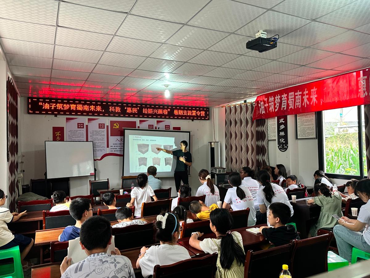 实践团立足于自身石油地质专业优势,为当地产业向绿色发展型产业转型提供技术支持和考察。带领惠民村当地留守儿童前往全国文明村镇、四川省实施乡村振兴战略工作示范村锦绣村开展绿色研学,见证了自己家乡由“煤炭之都”转型为“中国蚕桑之乡”的成就,提升了孩子们的自豪感和使命感,树立起“绿色低碳”理念和为建设家乡努力学习奋斗的信心。