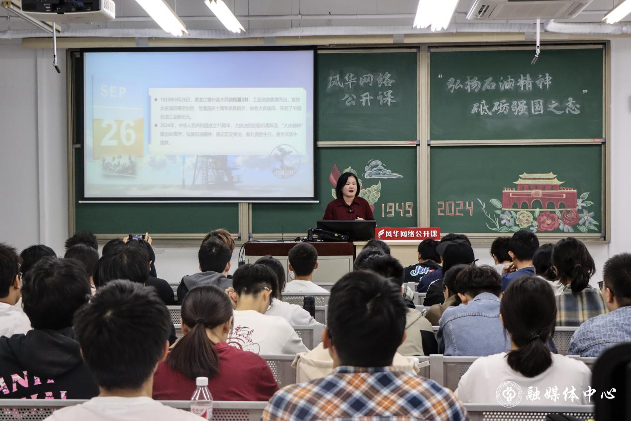 在大庆油田发现65周年之际,为引导学生进一步传承弘扬大庆精神(铁人精神),深刻领悟“爱国、创业、求实、奉献”的丰富内涵,9月26日下午,beat365举办风华网络公开课,马克思主义学院副教授李静静围绕“弘扬石油精神 砥砺强国之志”主题作了讲解。活动吸引了在校师生100余人现场听课,1万余人次线上参加。