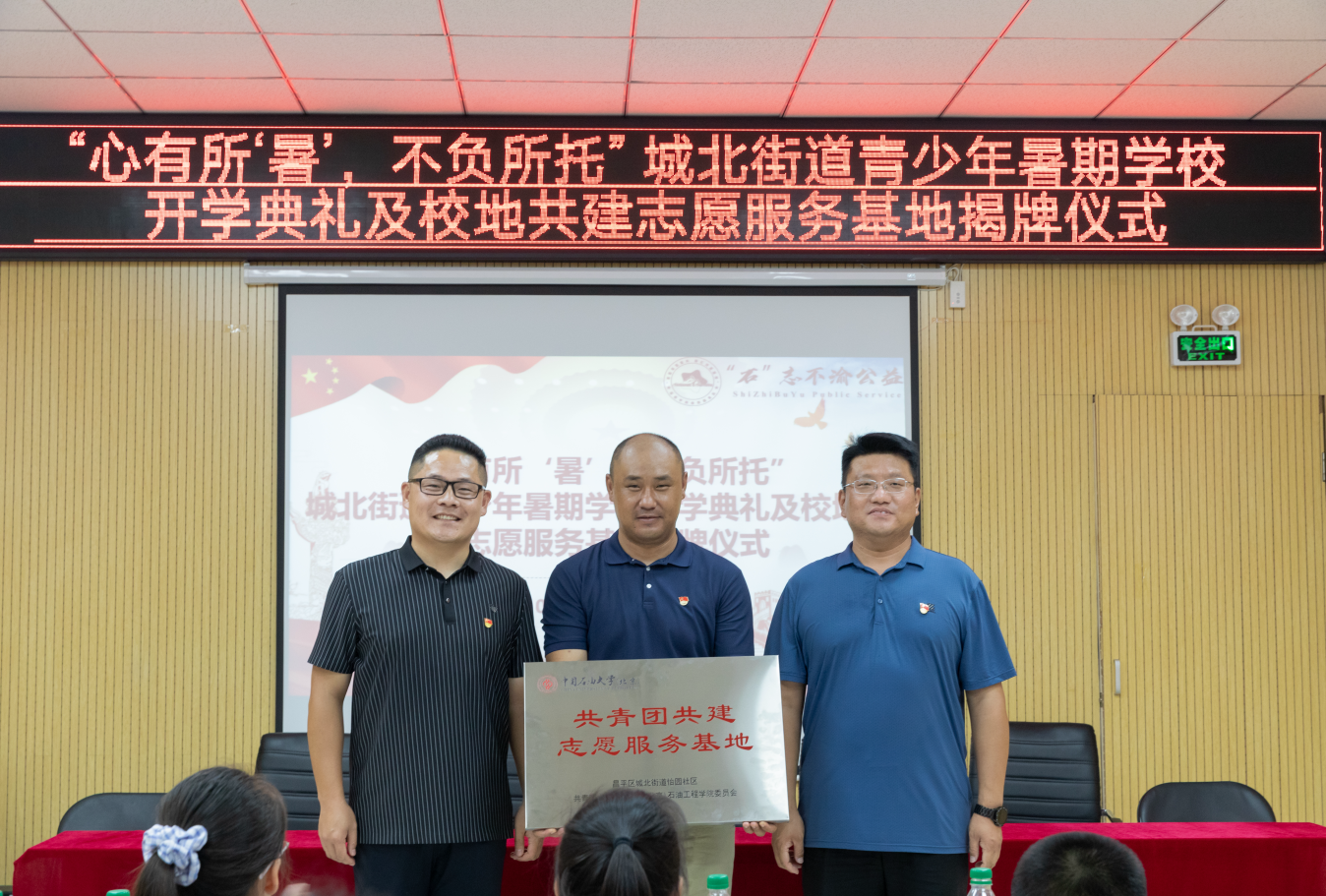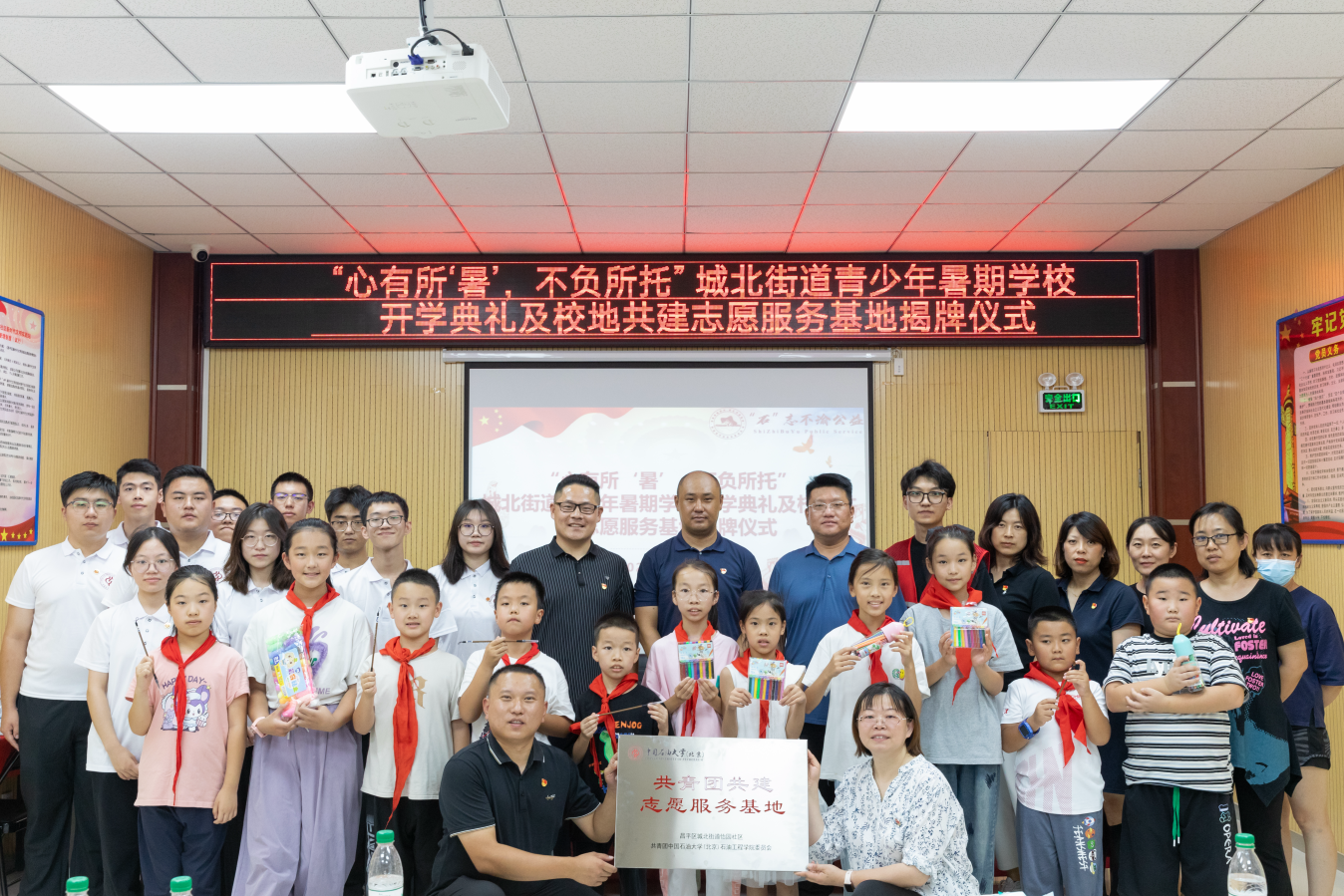 8月12日上午,“心有所‘暑’,不负所托”昌平区城北街道青少年暑期学校开学典礼及校地共建志愿服务基地揭牌仪式在城北街道怡园社区举行。城北街道党工委副书记赵国宇、怡园社区党总支书记赵志鹏,城北街道、怡园社区工作人员,beat365唯一官方网站(北京)石油工程学院学生工作负责人、“石”志不渝社会实践团、“铁人先锋”社会实践团全体成员,参加暑期学校的学生及家长代表参加活动。活动由怡园社区团委委员王子凡主持。