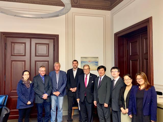 在罗斯托克大学,代表团一行会见了该校校长Wolfgang Schareck以及废弃物与资源管理学院、活塞与内燃机实验室负责人。双方围绕加强新能源、机械工程等专业领域合作与开展学生交流交换项目等内容深入探讨并达成共识。代表团一行参观了该校内燃机重点实验室和废弃物与资源管理重点实验室。