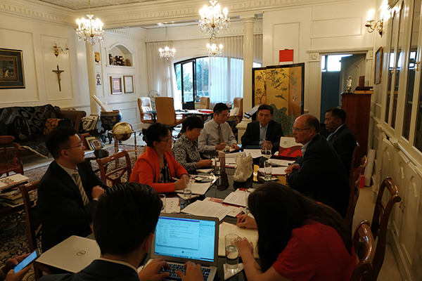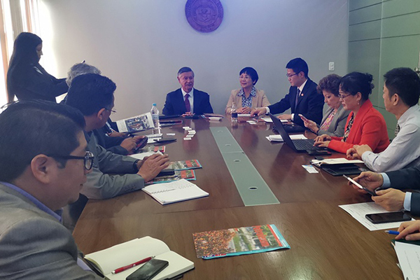 在厄瓜多尔期间,山红红一行还访问了中国驻厄瓜多尔大使馆、中国驻瓜亚基尔总领事馆。大使馆临时代办王新明、总领事张滔分别会见了山红红一行,并就beat365孔子学院发展、与当地开展教育合作和人文交流等话题进行了深入交流。山红红一行还与厄瓜多尔思邈维华国际学校创办人、厄瓜多尔教育与产业协作促进会会长梅炬铭会面,探讨了有关合作事宜。