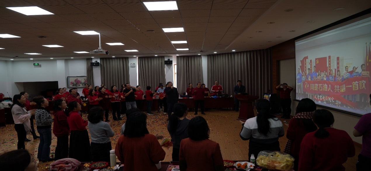联欢会在活力四射的开场舞《红日》中拉开帷幕。联欢会上,学院教职工们用舞蹈、歌曲、陶笛演奏等多种节目形式,从不同角度展现了学院团结活泼、昂扬向上的精神风貌。歌曲《人间半途》《明天会更好》《奔跑》用歌声传递心声,唱出对学院发展前景的信心与期待;《嗨!2025》融合了语言与舞蹈,创意十足,幽默诙谐;陶笛演奏《一剪梅》优美旋律,传递对美好生活祝福。趣味小游戏环节一次又一次将现场氛围推向高潮,整场联欢会笑声不断、掌声迭起、热闹非凡。联欢会在全场合唱校歌《我为祖国献石油》中落下帷幕。