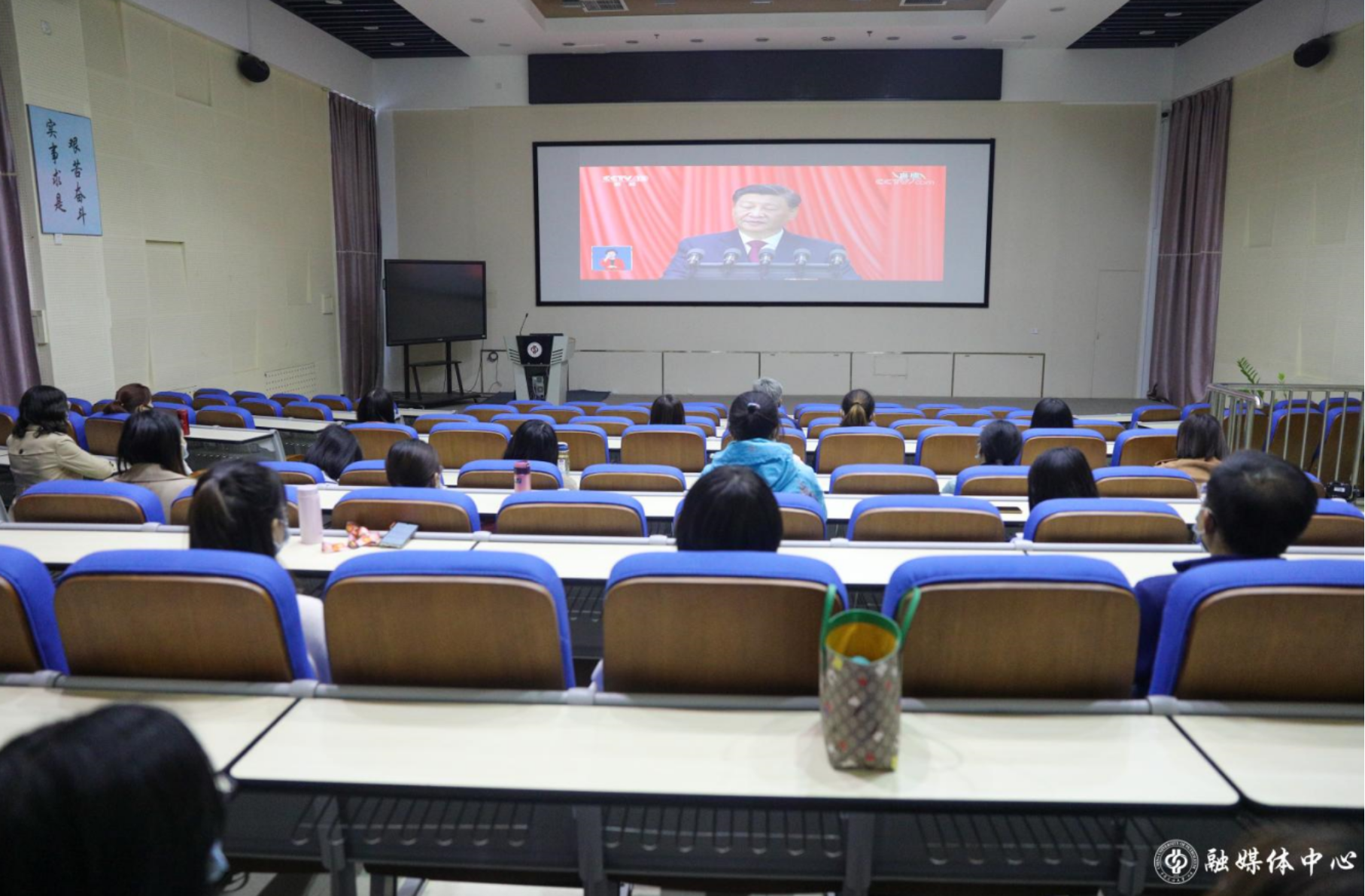 10月16日上午,学院党员干部在逸夫楼401一起观看中国共产党第二十次全国代表大会开幕式直播,习近平代表第十九届中央委员会向大会作的报告。大家深切感受到,十年砥砺奋进,绘写壮美画卷。报告振奋人心,从党的十八大到党的二十大,中国共产党带领全国人民书写了时代的华章,描绘了壮丽的画卷。总书记的报告语言朴实、论述精辟、主题鲜明、重点突出、观点深刻,是党的基本思想和理论的系统总结和全面部署,是全党智慧的集中体现。党员干部们认真聆听,部分居家党员也通过手机,电脑等收看和收听。