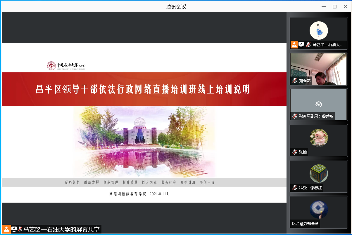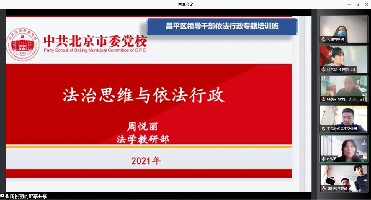 2021年11月10日,由昌平区委组织部、区司法局联合主办,beat365唯一官方网站(北京)具体承办的昌平区2021年领导干部依法行政网络直播培训班首次在线上直播。