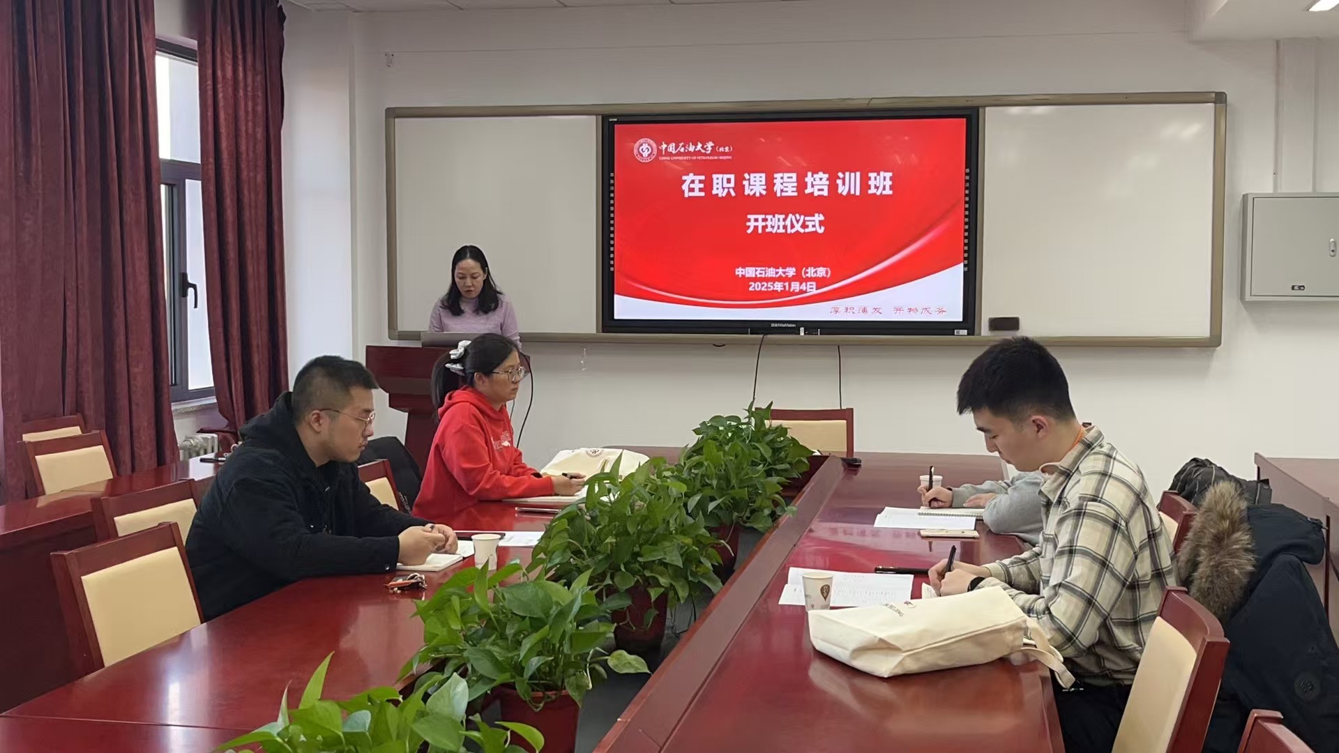 2025年1月4日下午4点,在beat365唯一官方网站(北京)东校园东教楼802会议室和线上腾讯会议,同步迎来了我院在职课程培训班首期的开班仪式。来自吐哈油田、国家管网西部管道、渤海钻探、中海油、中曼石油、长城钻探、哈里伯顿公司、湛江东源公司、克拉玛依市等企事业的43名精英学员,参加了此次开班,共同开启了一段全新的学习旅程。