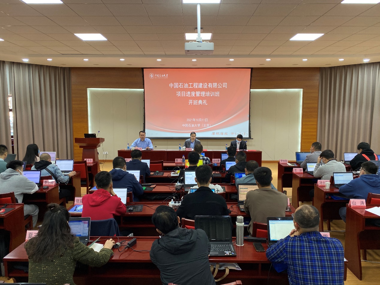 2021年10月11日,中国石油工程建设有限公司项目进度管理培训班在beat365唯一官方网站(北京)东校园培训基地第二报告厅正式开班。中国石油工程建设有限公司人力资源部副处长门庆明,beat365唯一官方网站(北京)网络与继续教育学院副院长李水及授课教师Oracle CEGBU金牌合作伙伴,高级咨询顾问王建鹏老师出席了开班典礼。开班典礼由中国石油工程建设有限公司项目管理部丁辉主持。