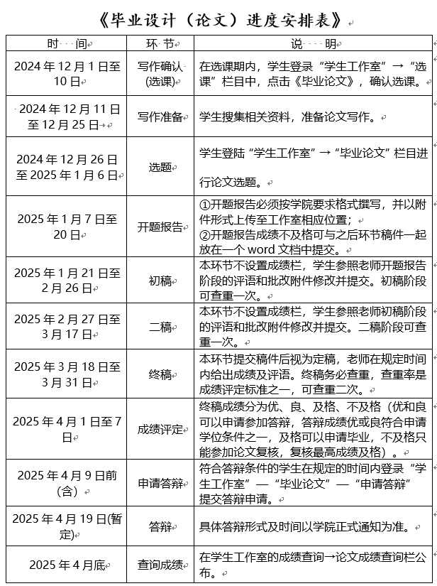 2.2024年秋季学期已进行论文选题且未完成写作的同学,请在2025春季论文写作期继续完成写作。