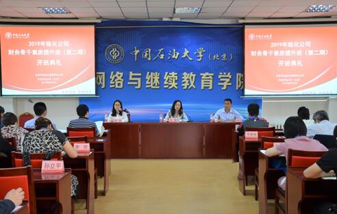 2019年5月20日上午,由我校网络与继续教育学院承办的“中海石油炼化有限责任公司2019年炼化公司财务骨干素质提升班(第二期)”在高端培训中心第二报告厅隆重开班。委培方领导中海石油炼化有限责任公司财务部副经理张静、beat365唯一官方网站(北京)网络与继续教育学院副院长刘玉平出席开学典礼并讲话。