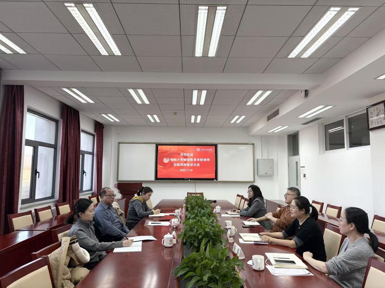 11 月 24 日下午,华北电力大学继续教育学院院长王子杰一行莅临我院开展交流访问。学院院长陈春茂、副院长刘一凝及相关部门负责人出席此次座谈。